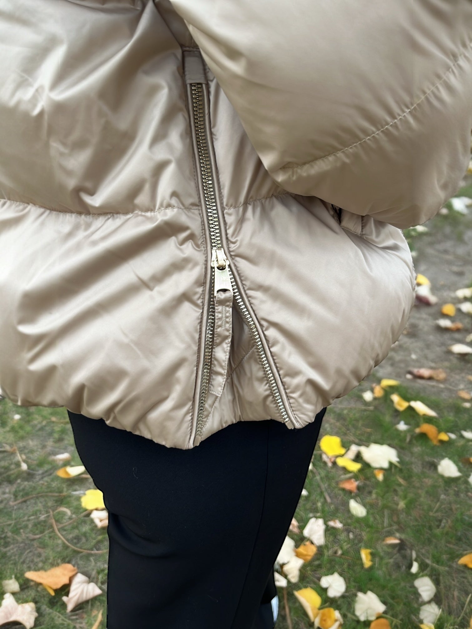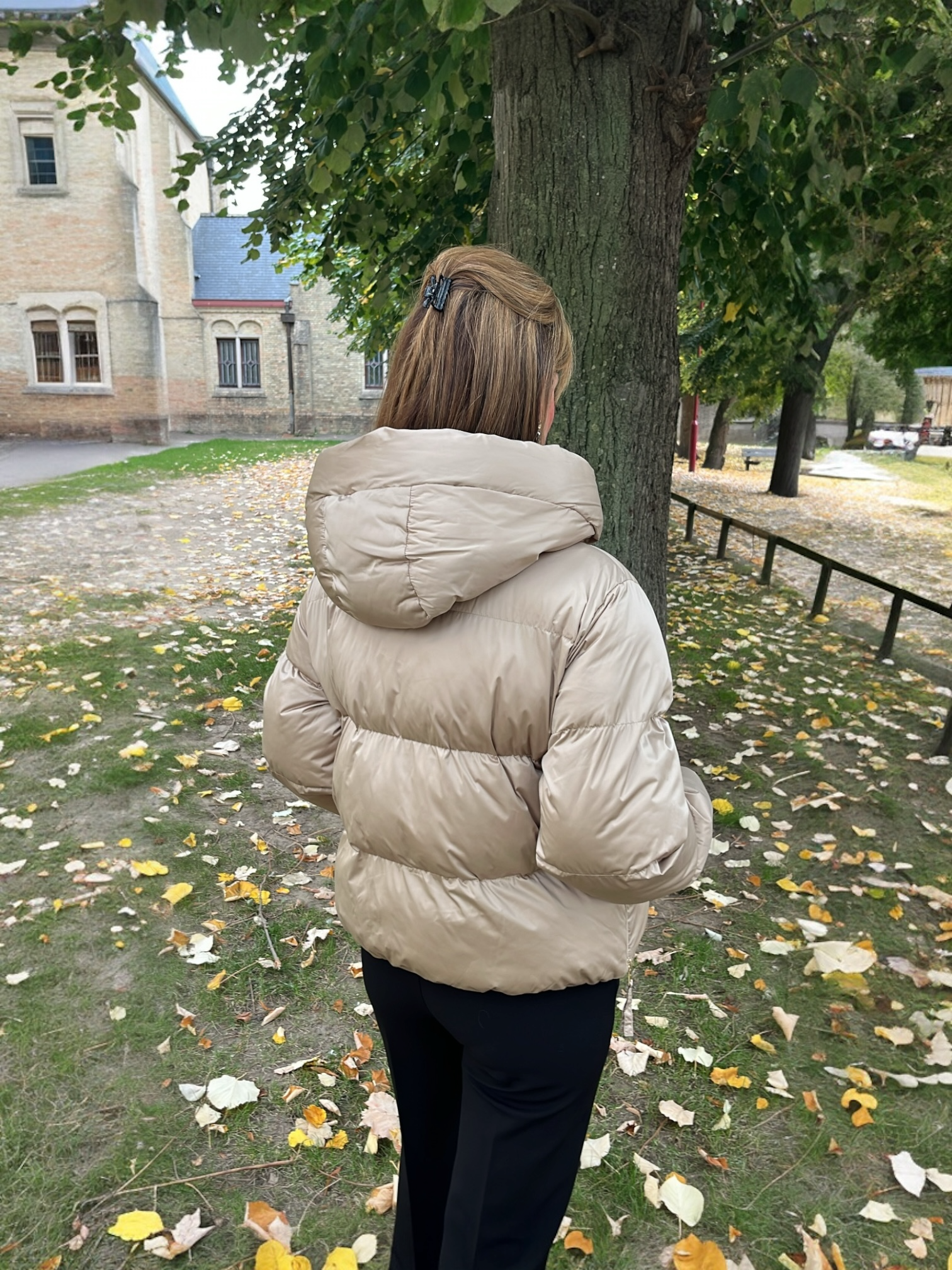 Deze licht glanzende, korte pufferjack is stijlvol én praktisch: