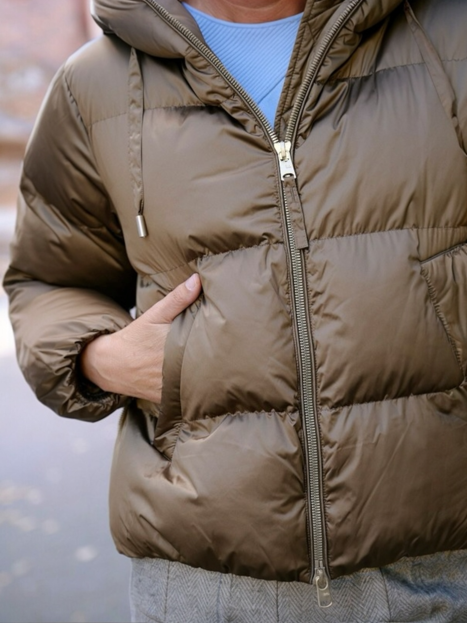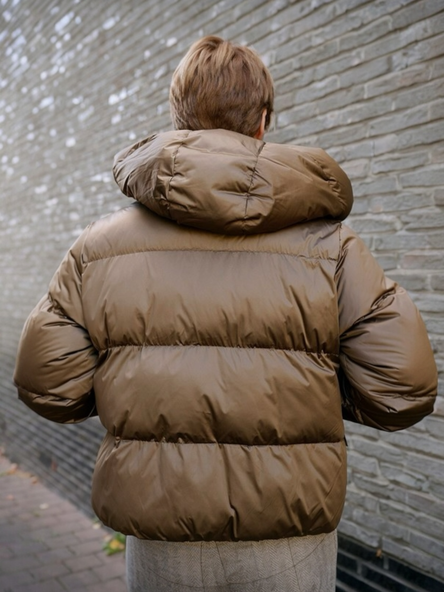Deze licht glanzende, korte pufferjack is stijlvol én praktisch: