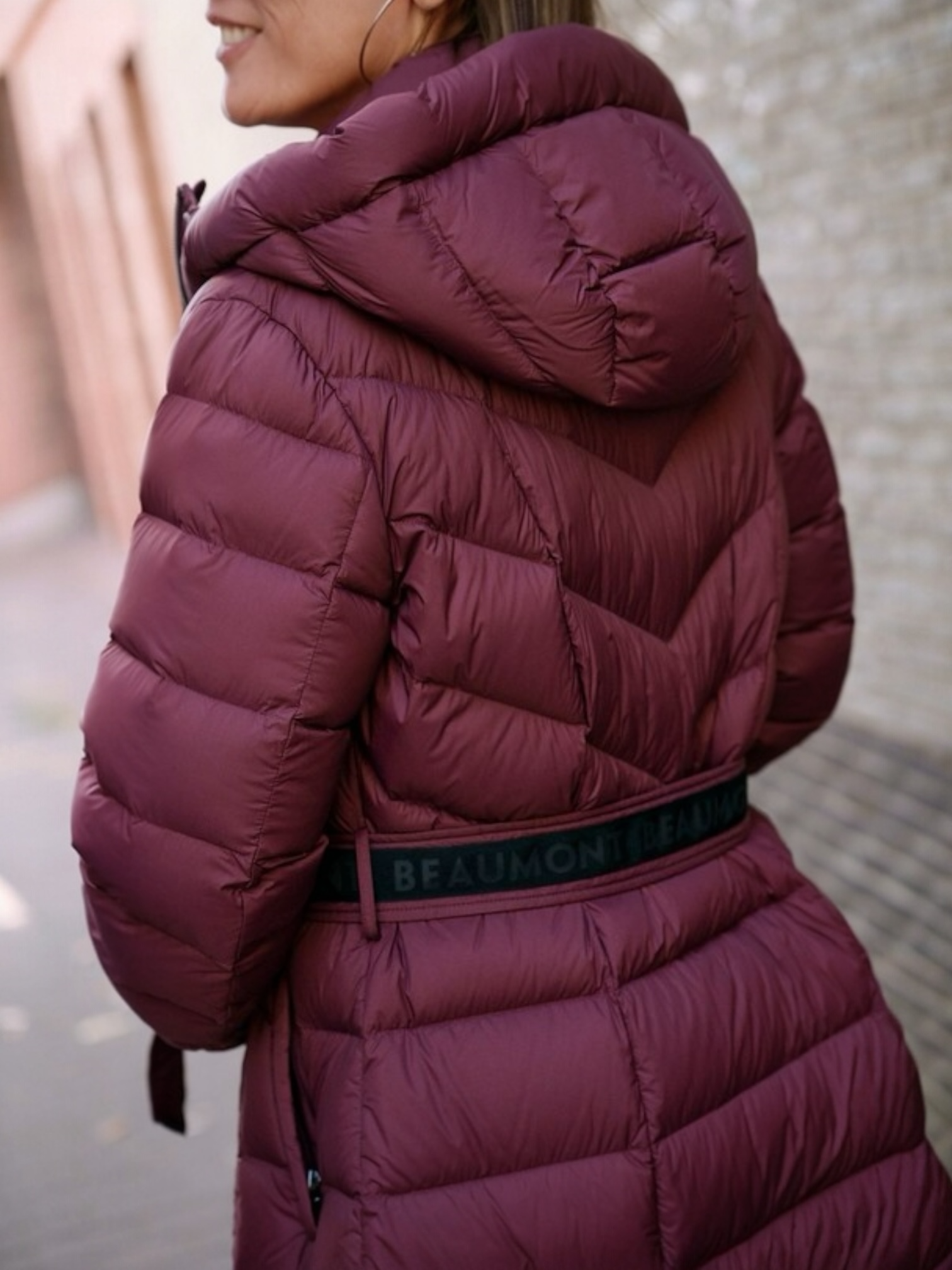 Met 2-way rits, ceintuur met logo en gebreide manchetten voor extra comfort.