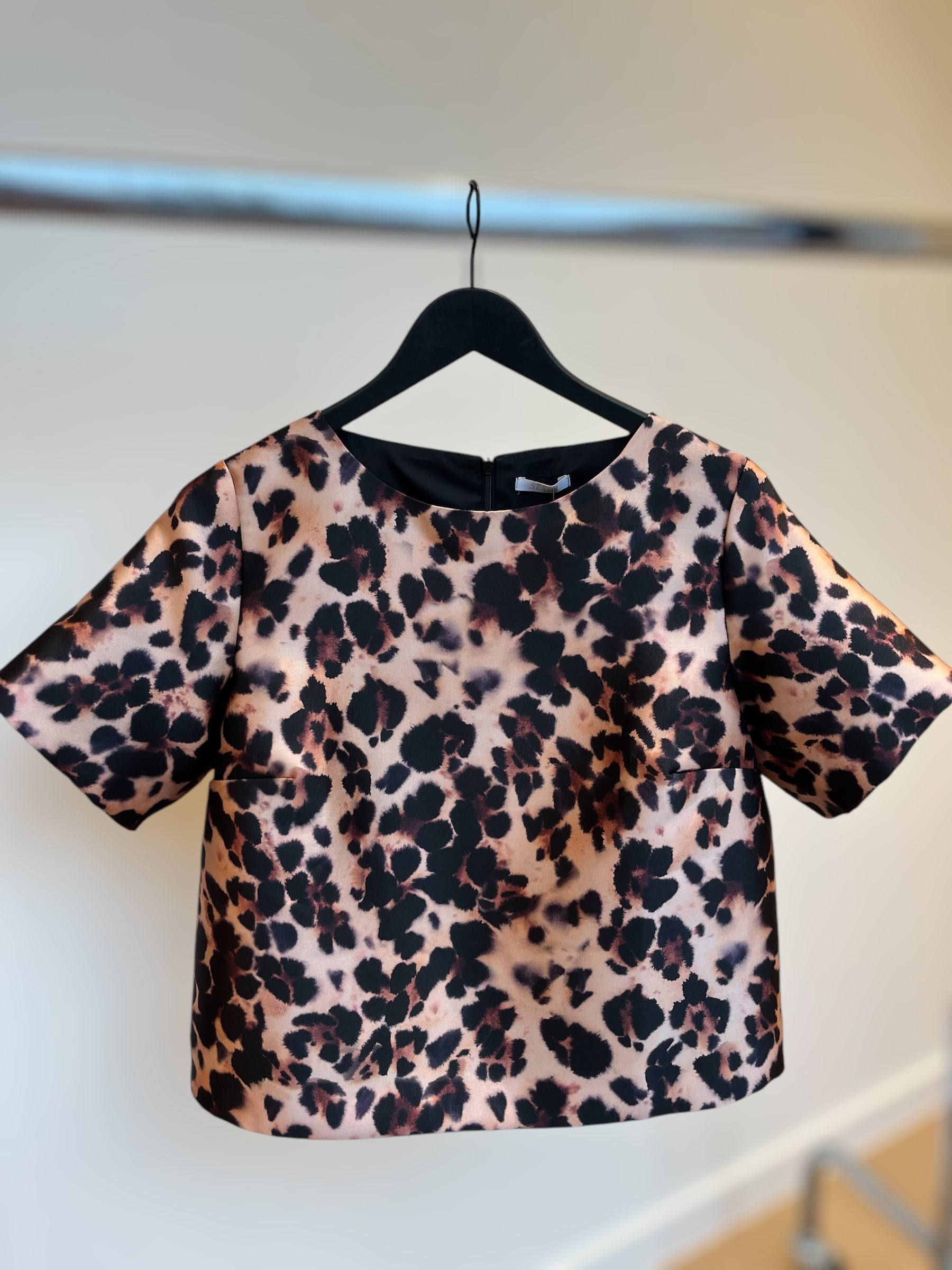 Bloesje heeft een ronde hals en korte mouwen.