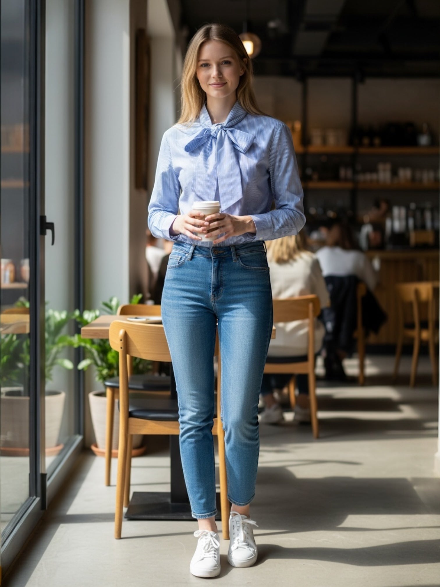 Witte bloes met een fijn blauw streepje Blue Bay.