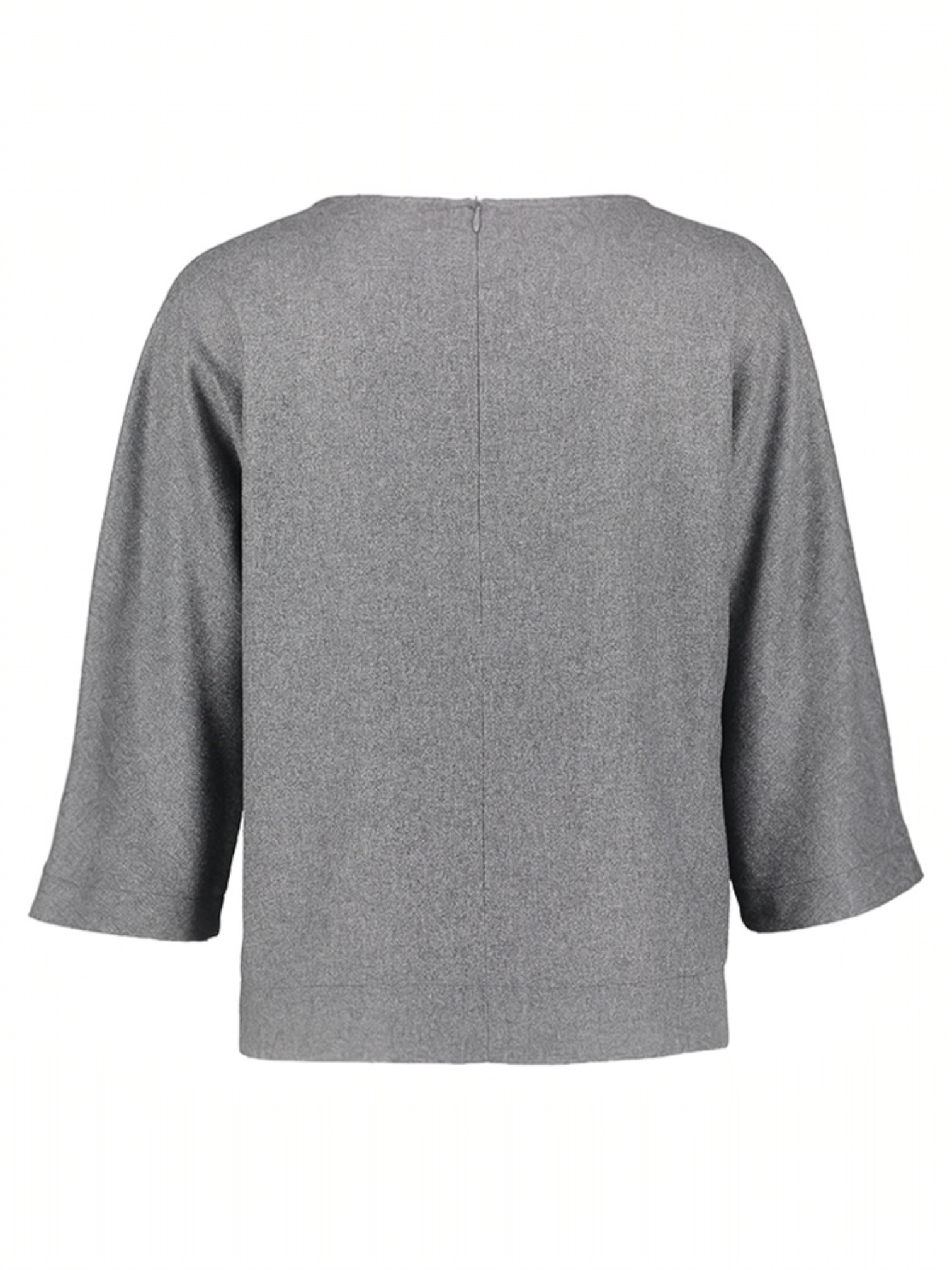 Voor zij die het graag sober houden: gewone, donkergrijze wijde top met ronde hals, rits achteraan en splitjes opzij, verder niks. Als ensemble met bijpassende TWAIN rok. Ook te vinden in onze webshop.