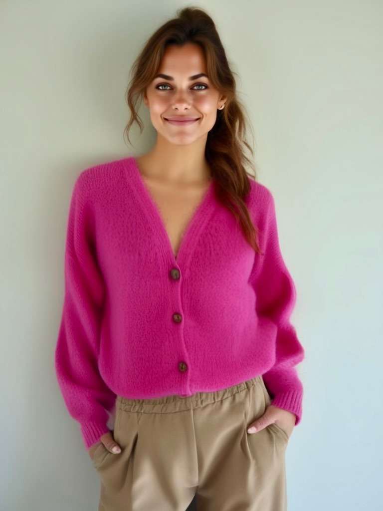 Gilet KATE met knopen - Fedora Fuchsia - Bonita Avenue