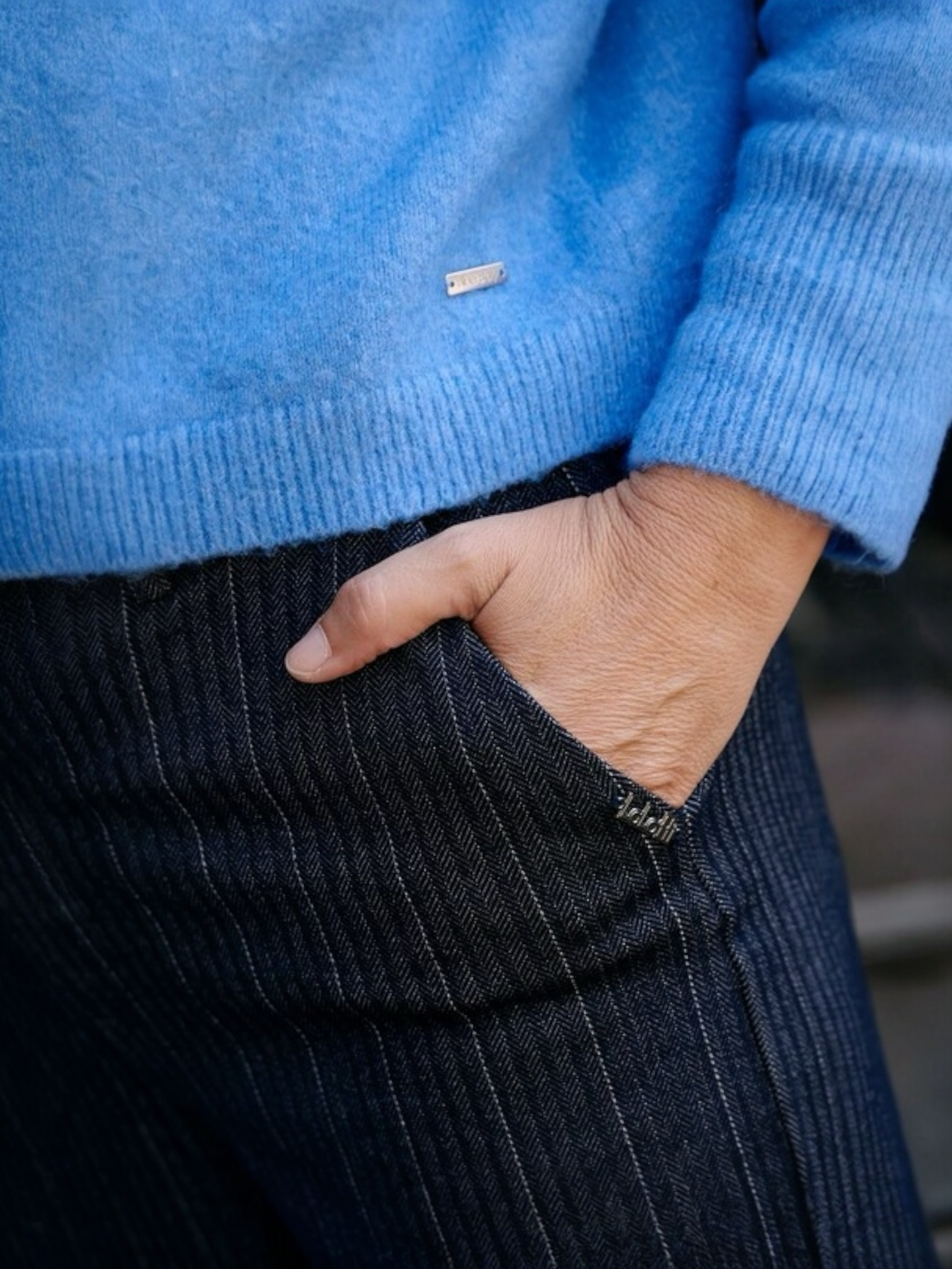 Lalotti- Blauwe stretch broek met fijne krijtstreep ODELIA MILANO