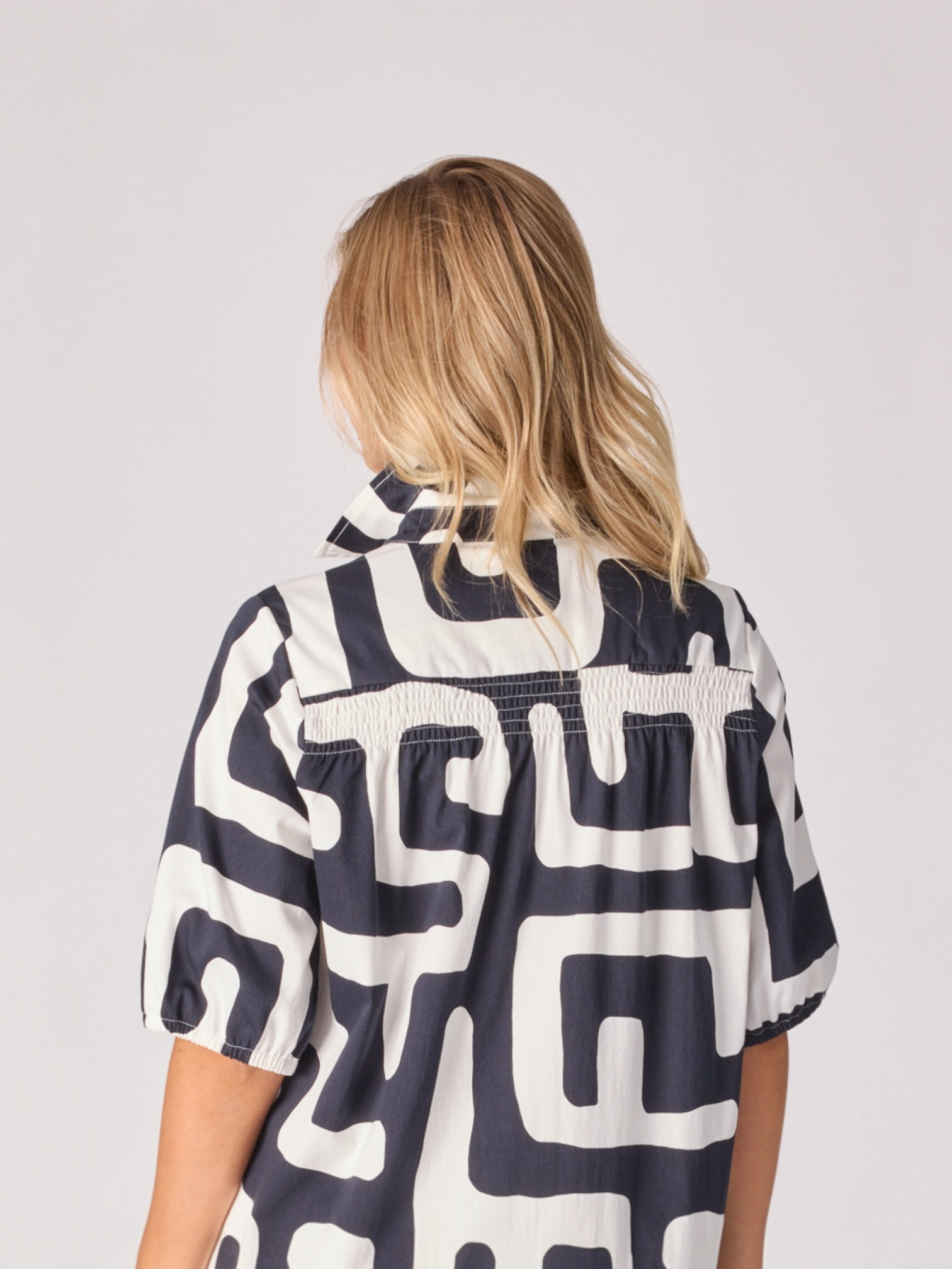 Dit korte katoenen kleedje heeft een speelse en luchtige uitstraling. De korte mouwen en het rekkerdetail bovenaan op de schouders zorgen voor een comfortabele fit die mooi blijft zitten en een vrouwelijke, charmante look creëert.