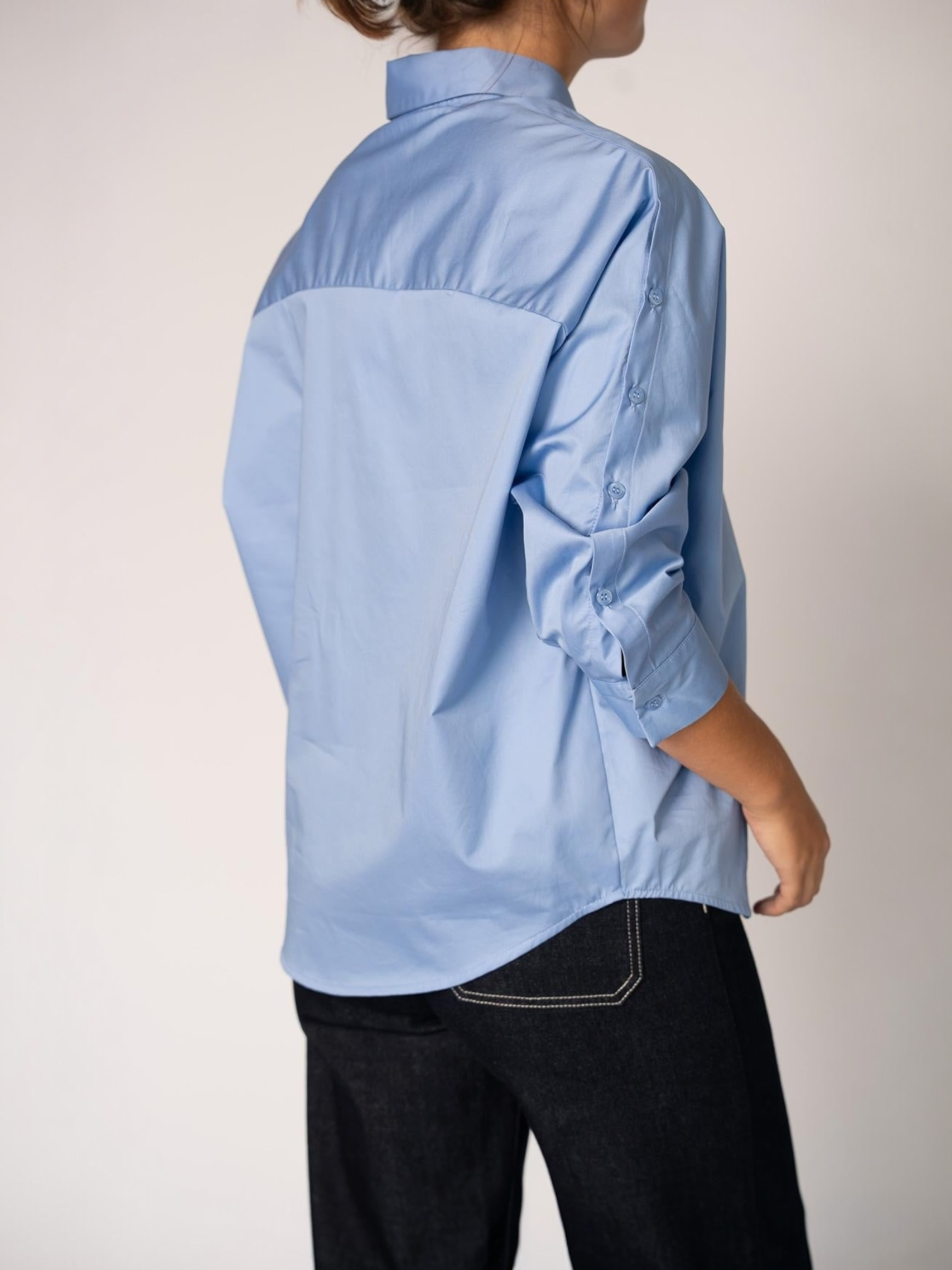 Deze luchtige, oversized blouse mag niet ontbreken in je garderobe. Heerlijk losvallend en comfortabel, met net dat tikkeltje extra: de mouwen zijn afgewerkt met fijne knoopjes – draag ze open voor een nonchalante look, of gesloten voor een classy touch.