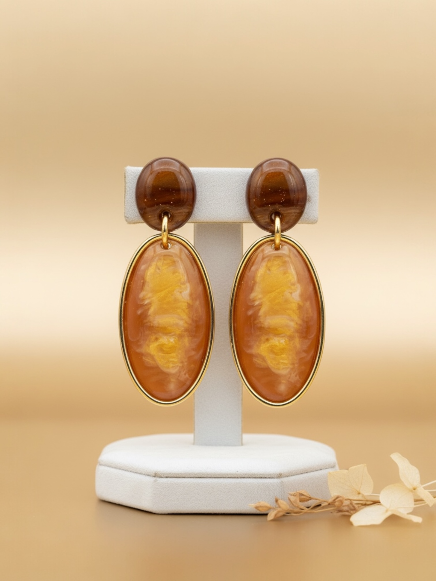 Oorbellen cognac steen in hars.
