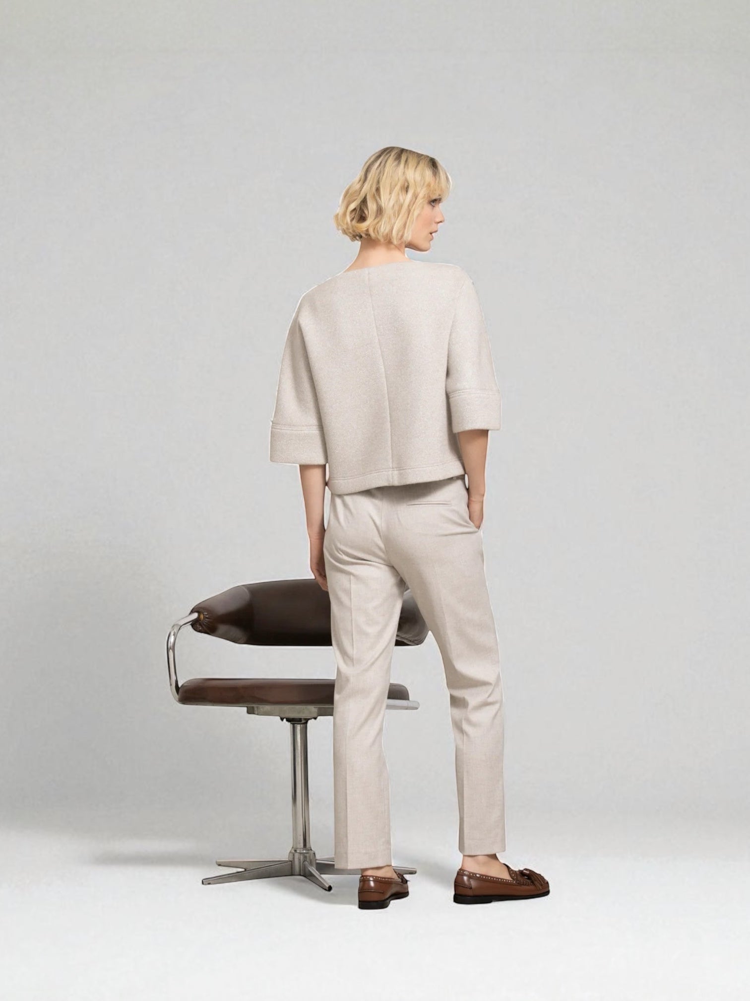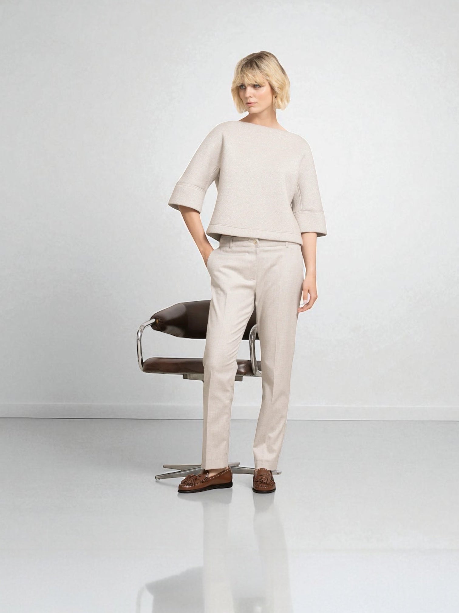 Broek met Italiaanse snit, ingestreken vouw en 7/8 lengte.
