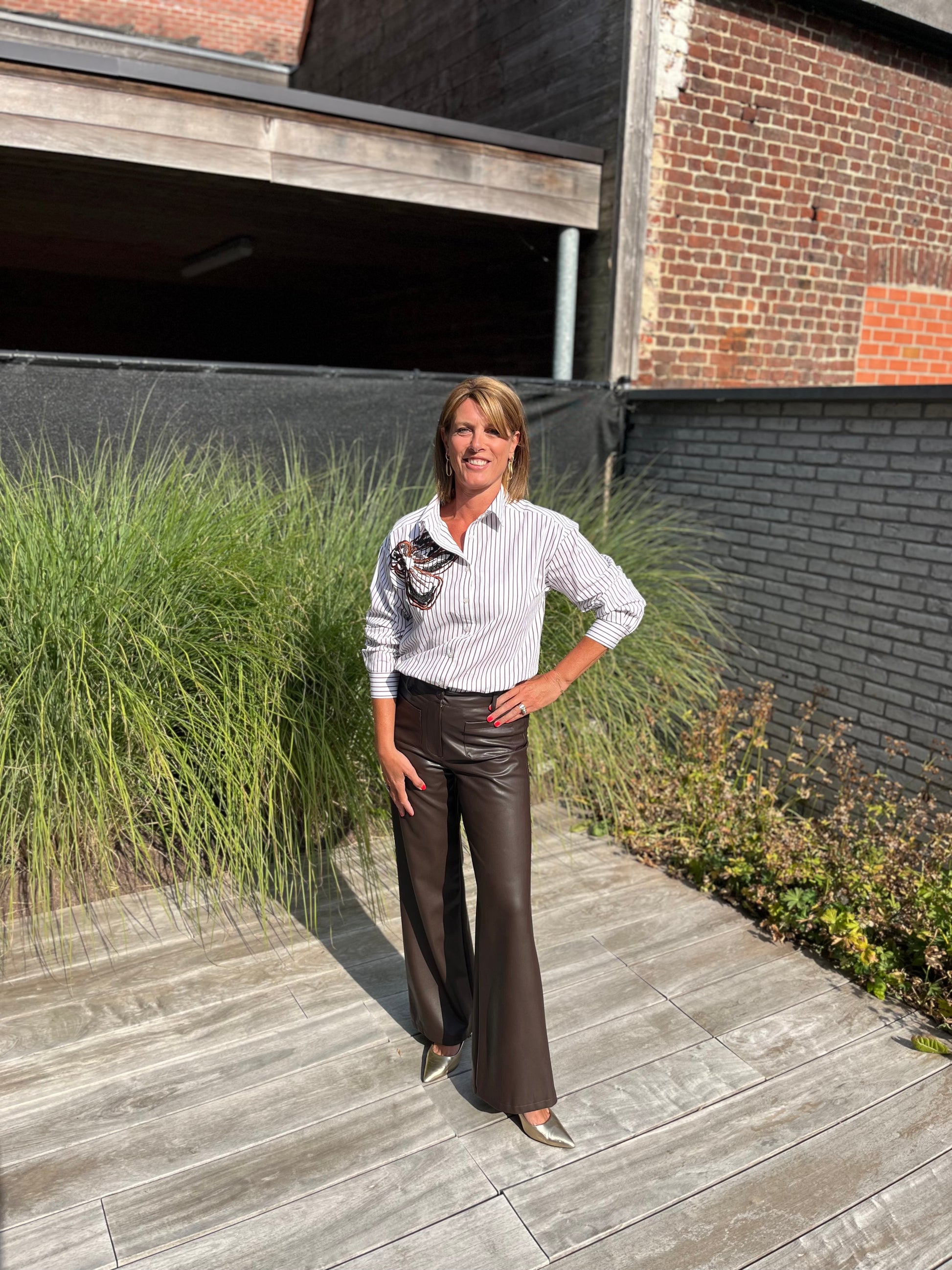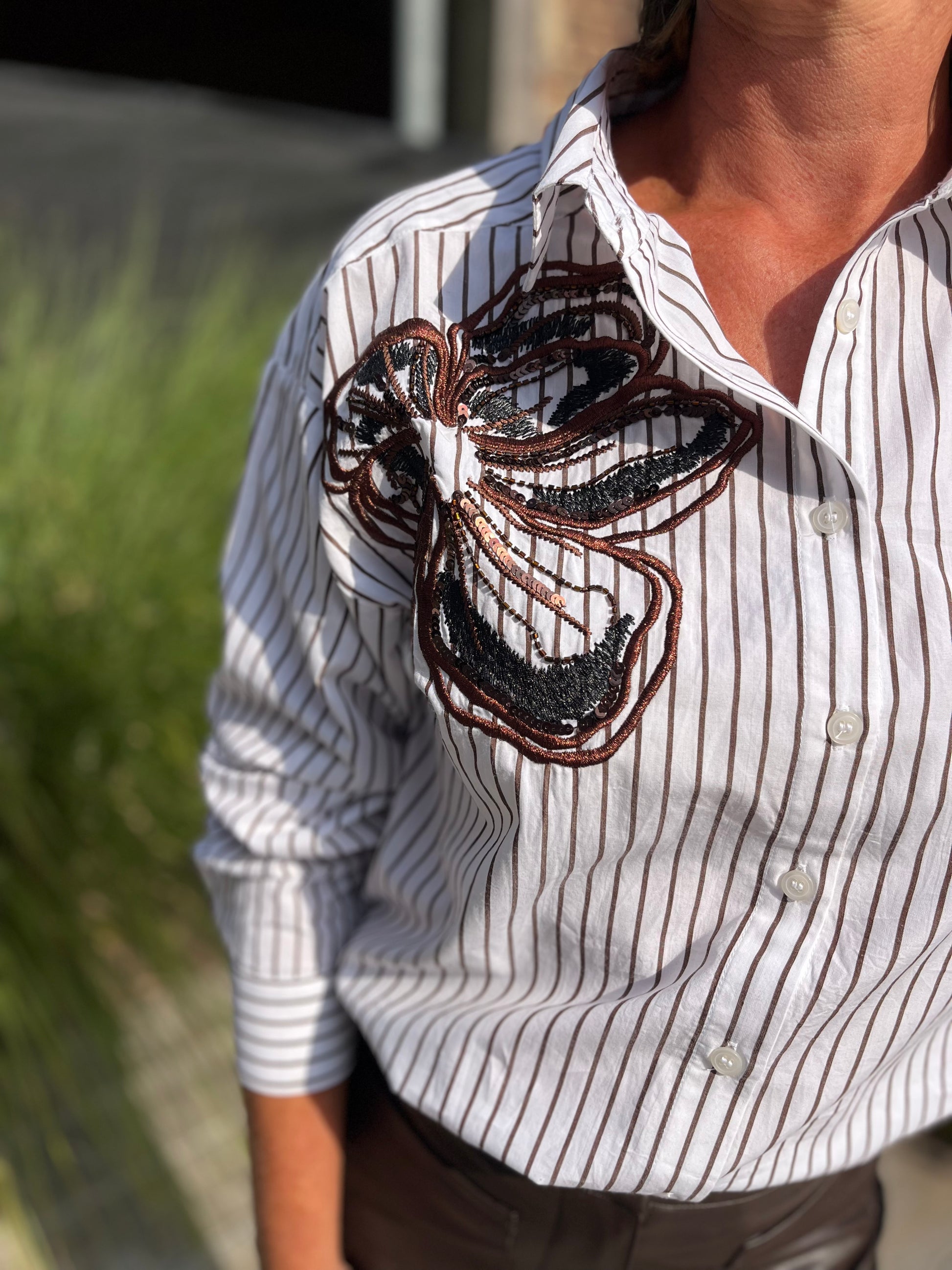 Senso - witte bloes bruine streepjes lange mouwen JIDAU S1941