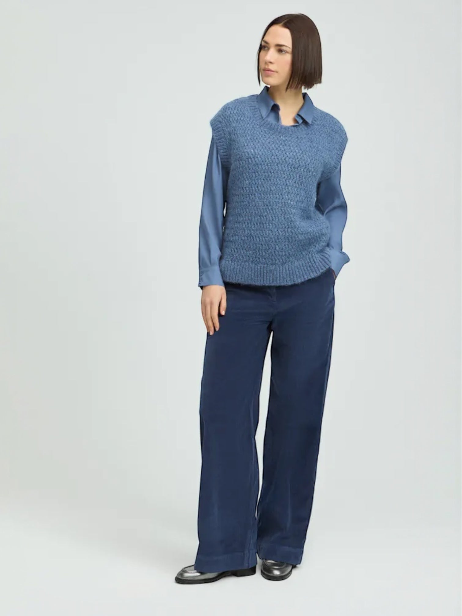 Trendy én comfortabel: deze broek met wijde pijpen is een echte topper. De elastiek in de rug zorgt voor een mooie pasvorm, terwijl de blinde ritssluiting met knoopsluiting netjes afgewerkt is. Voorzien van twee handige steekzakken vooraan en gemaakt uit een zachte, soepele stof die heerlijk aanvoelt. Draagbaar van casual tot chic – een veelzijdig stuk voor elke garderobe.